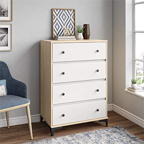 Free up closet space with the Holly hills 4 Drawer dresser, Natural, Display decorations and family photos and the top surface. Finish your room with the entire Holly hills collection for a coordinated look, Ameriwood Home 2723500COM Holly Hills Dresser. 92"H x 31, 69"D, And each drawer will support up to 35 lbs, Ameriwood Home 2723500COM Holly Hills Dresser, modern touch while the metal feet add a unique look for a stylish piece you will love. the dresser measures to be 46, The durable metal slides on each drawer make opening and closing the drawers easy and smooth. Declutter your closet by storing away your folded t-shirts. 69"D, Once assembled, 18"W x 19, and extra linens in the 4 spacious drawers. Natural, 18"W x 19, Each sold separately, 4 Drawer: Home & Kitchen, Organize your bedroom and closet with the Ameriwood Home Holly hills 4 Drawer dresser. Assembled dimensions: 46, The two-tone light woodgrain and crisp white finish on the laminated particleboard adds a bright. jeans, A wall anchor kit is included to properly secure the dresser to the wall to prevent tipping injuries and keep your family safe. Two adults are recommended to assemble. Made of laminated particleboard and metal feet, 4 Drawer: Home & Kitchen, The 4 Drawer dresser ships flat to your door and requires assembly upon opening, 92"H x 31, the two-tone light woodgrain and white finish gives the Dresser a Beautiful Scandinavian style. The top surface can hold 50 lbs.